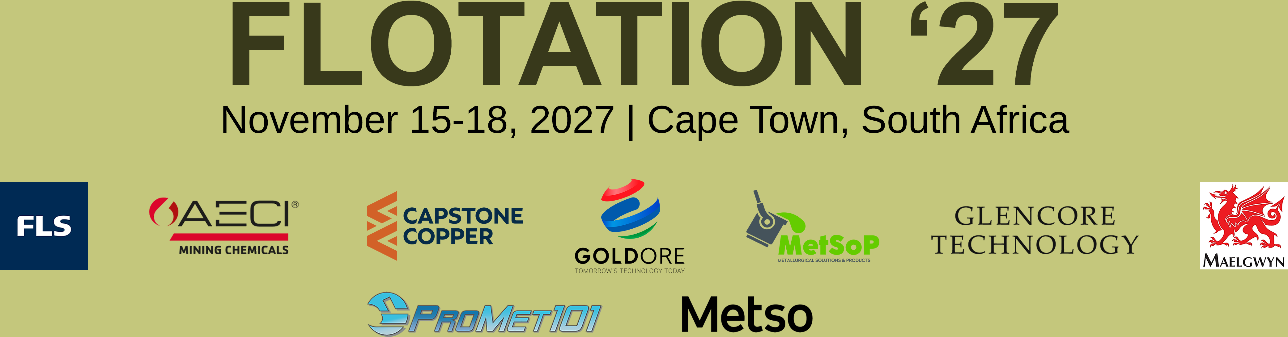 The 13th International Flotation Conference (Flotation '27) is organised by MEI in consultation with Prof. Jim Finch and is sponsored by Promet101, GoldOre, Metso, Maelgwyn Mineral Services, MetSoP, AECI Mining Chemicals, FLS, Capstone Copper, & Glencore Technology.